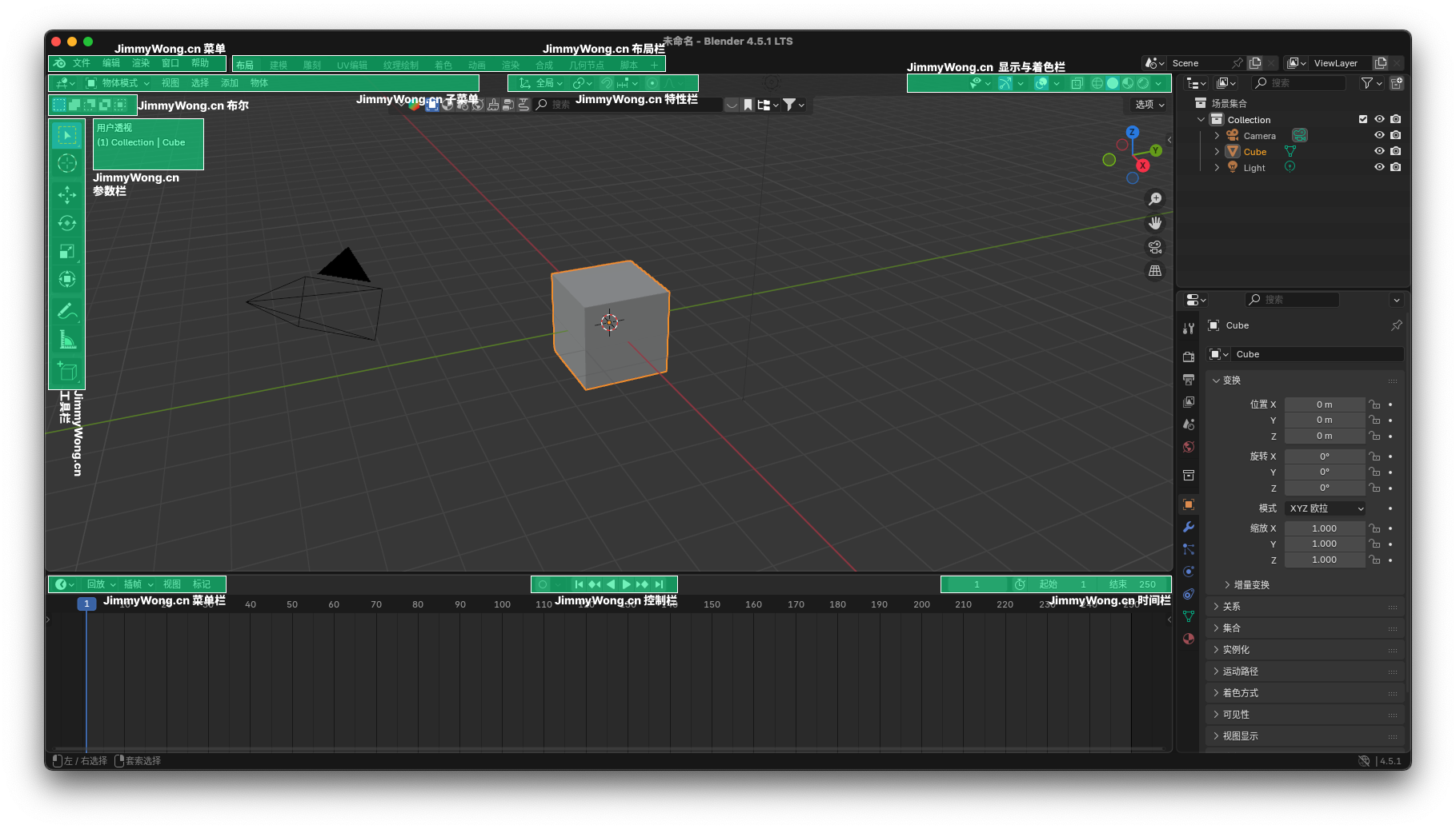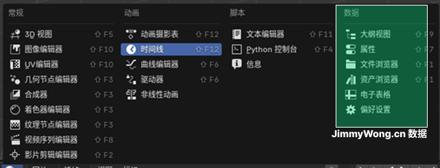 在本书中我们将 Blender 的界面拆开来分析说明,为了避免混淆,在本书中,我们尽量少减少名词的使用,将功能类似的统称为一个,个人觉得,有些概念单词,其实是指同一个的。