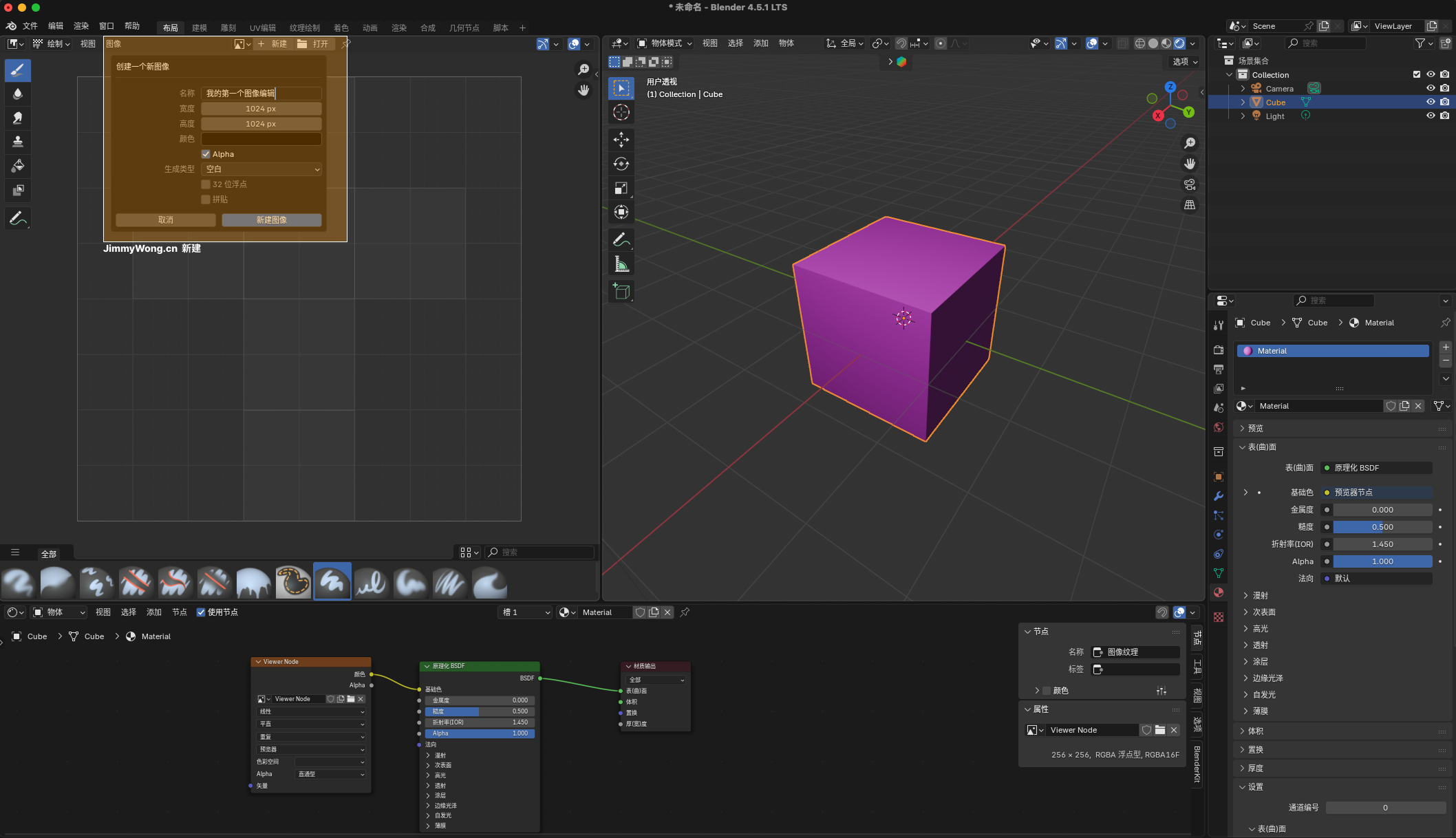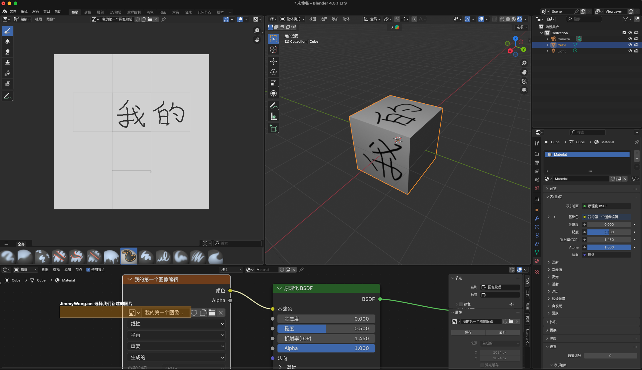我们进入【绘制】工作台,新建一个图像【我的第一个图像编辑】然后将他贴图到我们的模型上,如图 图 3.1.1.2-2