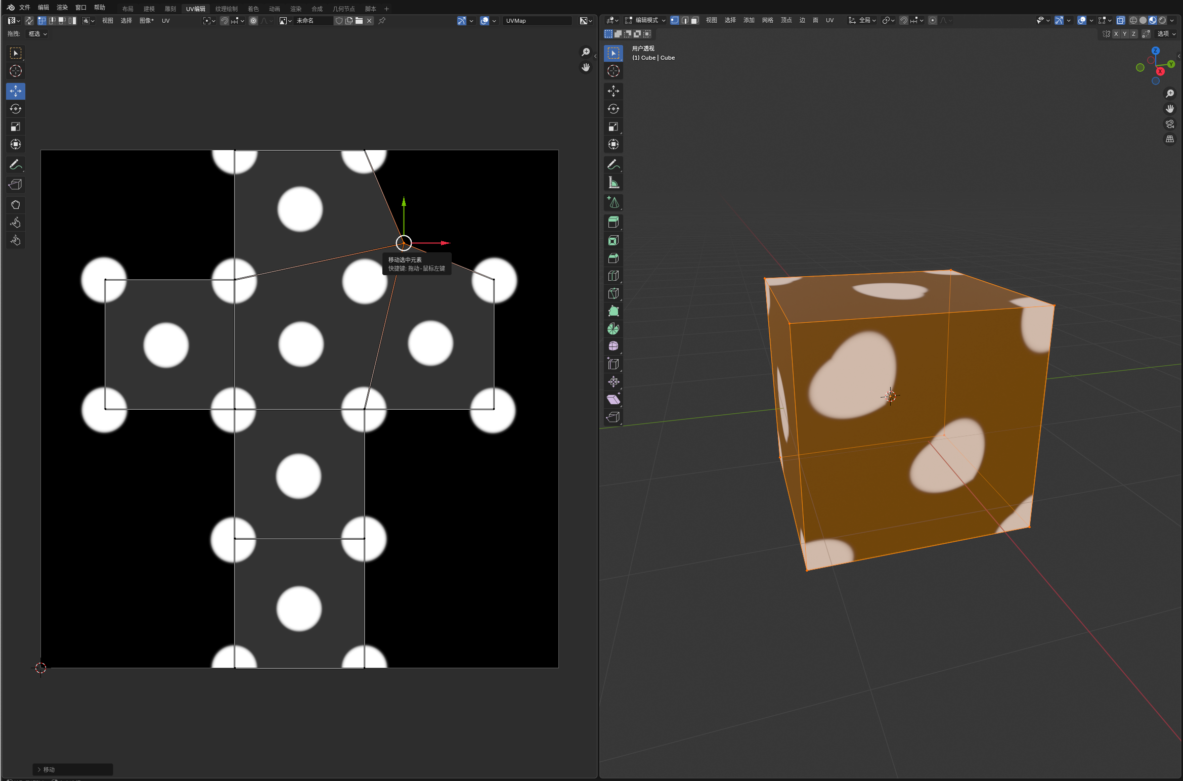 此时我们只需要修改UV即可以通过调整UV来实现贴图的位置。