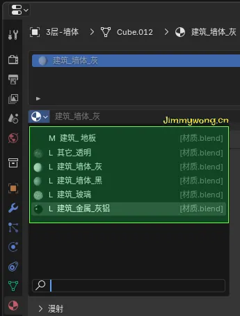 而我们通过修改【材质.blend】这里面的材质信息,就可能对应的更新到所有【关链】对应【材质】信息