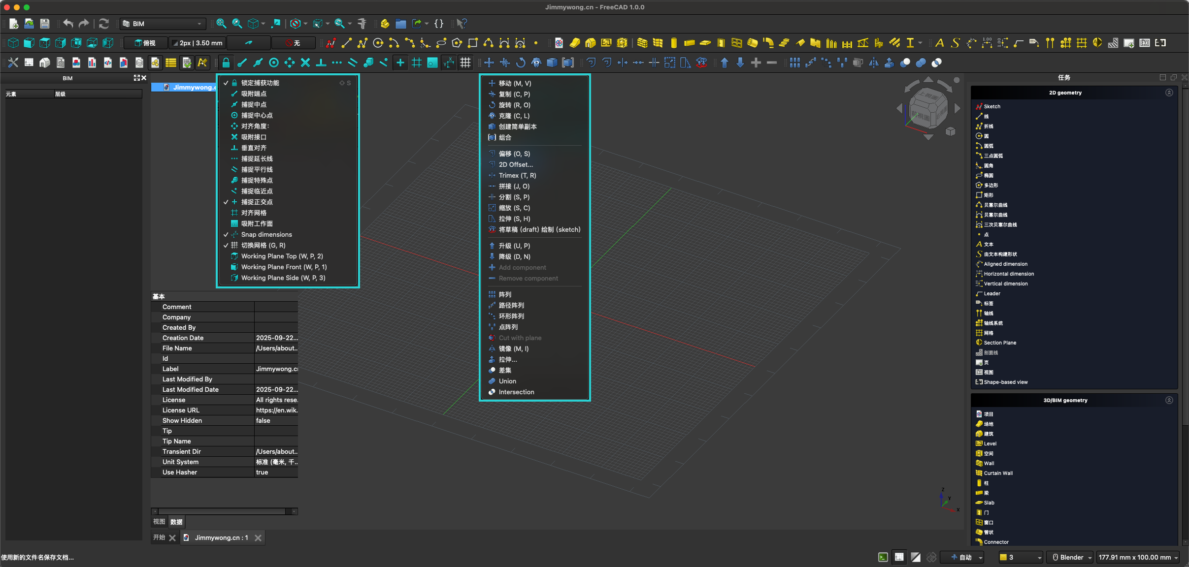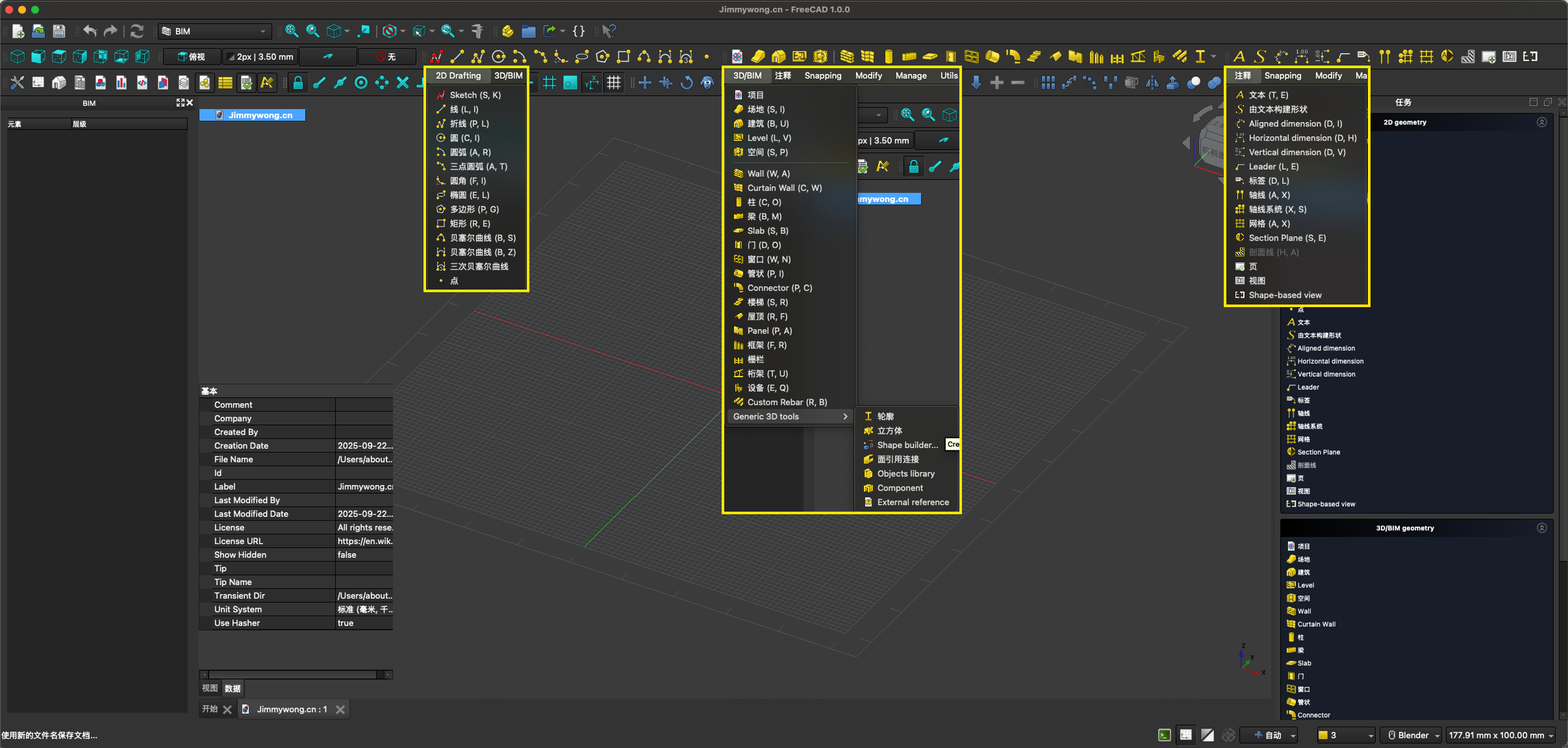 BIM 工作台(BIM Workbench)是 FreeCAD 专门为 建筑信息建模(Building Information Modeling) 开发的一个工作台。其实就是Draft工作台和Arch工作台的结合体,这样就可以方便我们通过导入施工图纸进行模型搭建。