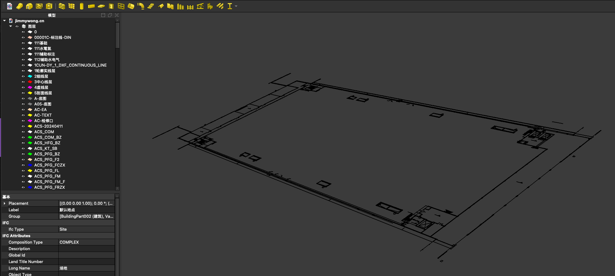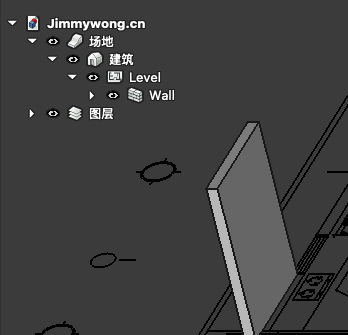 导入我们准备好的【DXF】图纸后,就可以看到在我们的项目下【jimmywong.cn】会多了一个名为【图层】的图层,这就是我们导入的图纸内容,图 2.2.2-1