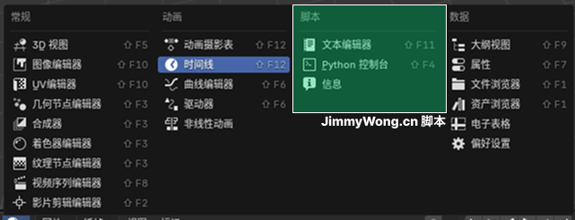 在Blender中将整个应用划分为【常规】【动画】【脚本】【数据】这四大模块,而每一项内容又会随着对象的性质进行变化,比如在【数据】这一项里【修改器】【粒子】【物理】【约束】这些也是比较重要的内容,因为内容较为广,因此会分成成模块化进行讲解,这样的梳理,相对来说易于让读者了解各个模块的作用,Blender并不像FreeCAD那样,分成多个工作台,Blender的创作并不要求像FreeCAD那么严谨,毕竟Blender的创作艺术成本比较高,相对来说也比较随意,也可以产生很多不同的造型,,因此本书主要是针对,如果使用Blender去构造一个项目和管理项目