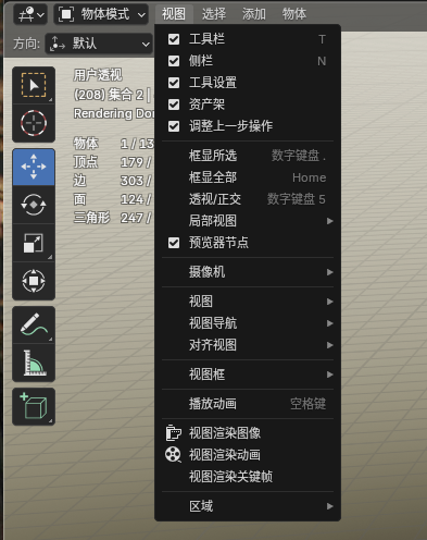 - 【移动】【旋转】【缩放】是物体变换的核心工具,对应快捷键 G、R、S;