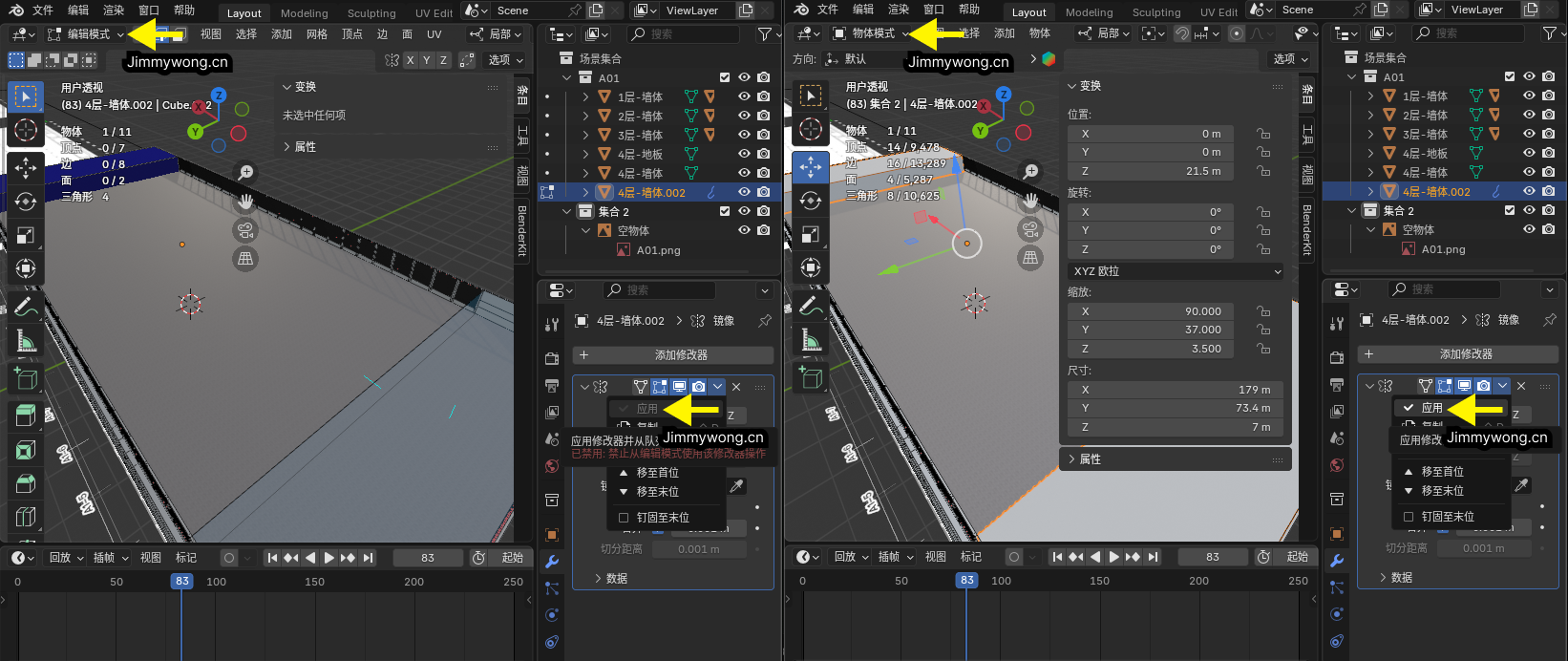 针对物体的操作,在该模式下可以使用【修改器】对物体进行二次操作,如细分,倒角,阵列等,这就是为什么需要切换到【物体模式】才可以【应用】【修改器】。