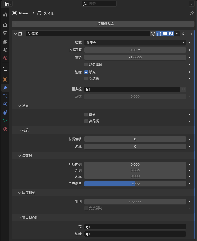 在使用三维【实体化】修改器时需要将模式选择为【复杂】,【偏移】是指【厚度】朝哪个方向进行【缩放】,【正数】是向外,【负数】是向内。在【实体化】修改器中,主要参数【模式】及【厚度】【偏移】这三个参数是比较常用的,也基本是他们起到关键作用,其它的【属性】参数一般作用不大。