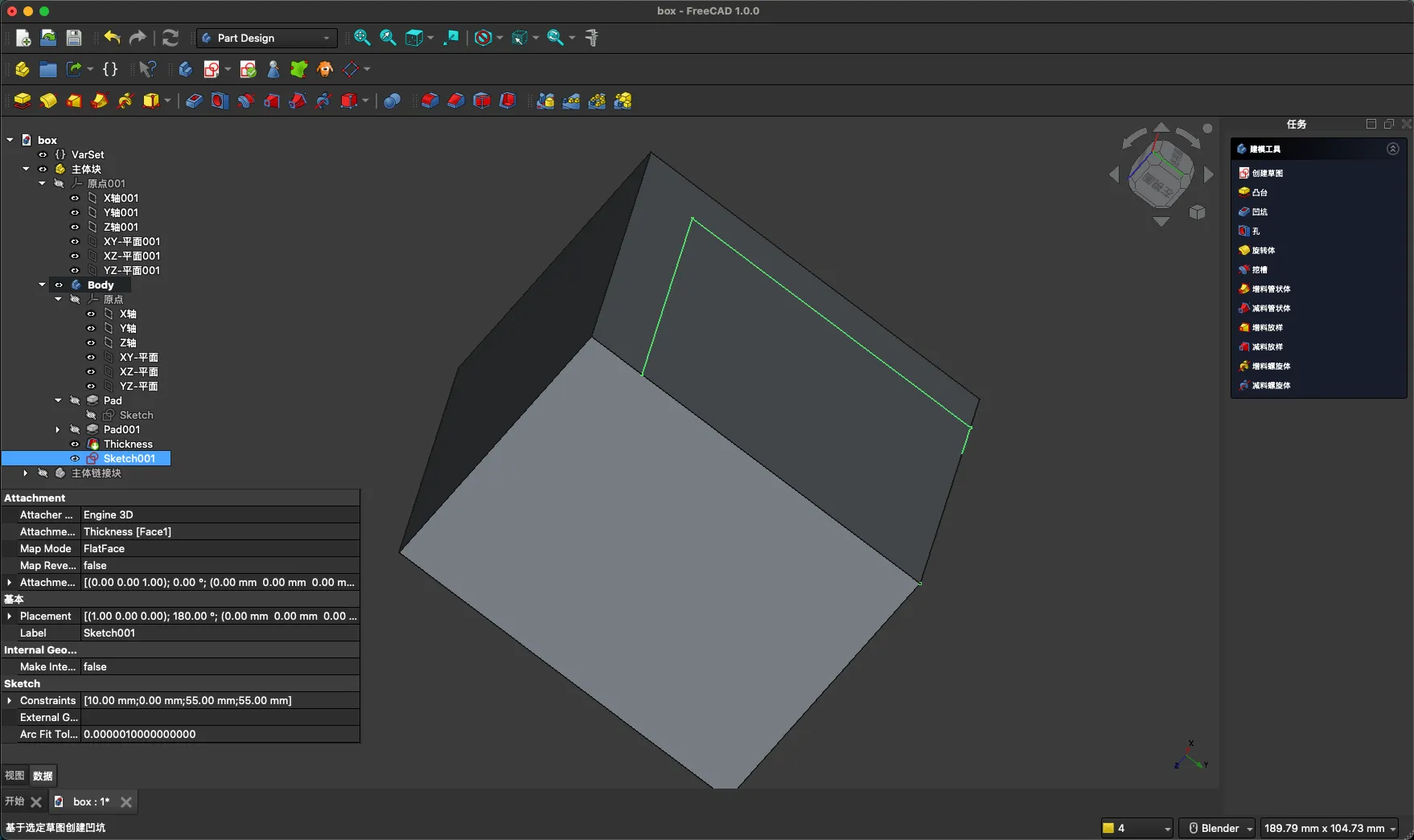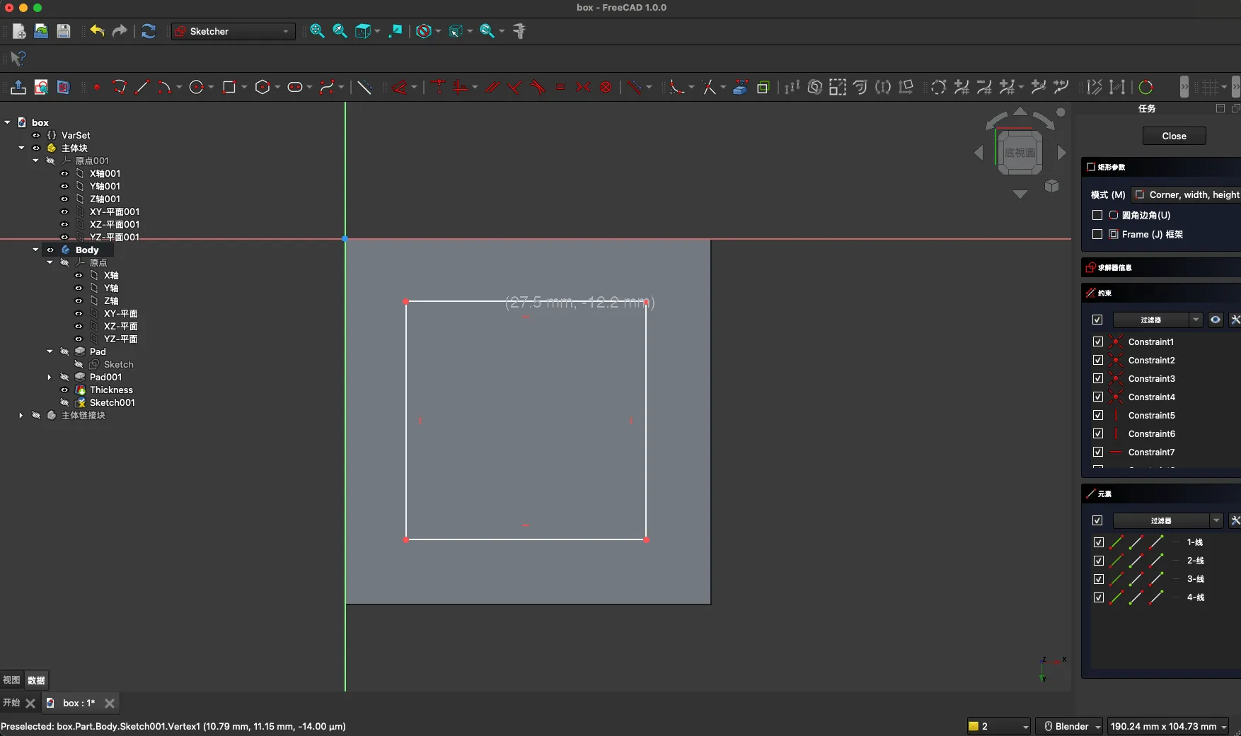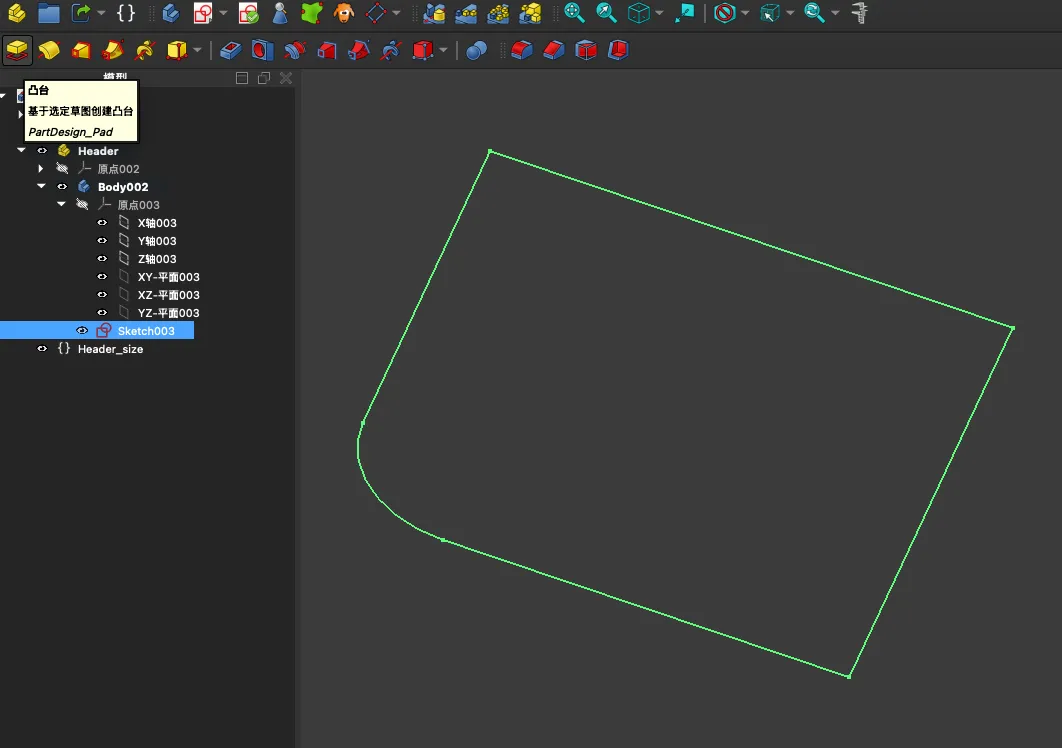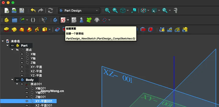 这样的绘制方式相对比较规范,不容易产生问题,如果不以原点进行绘制,有时会产生不必要的麻烦,FreeCAD是相对比较严谨的工业设计。