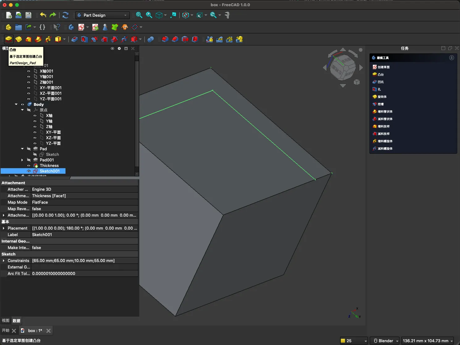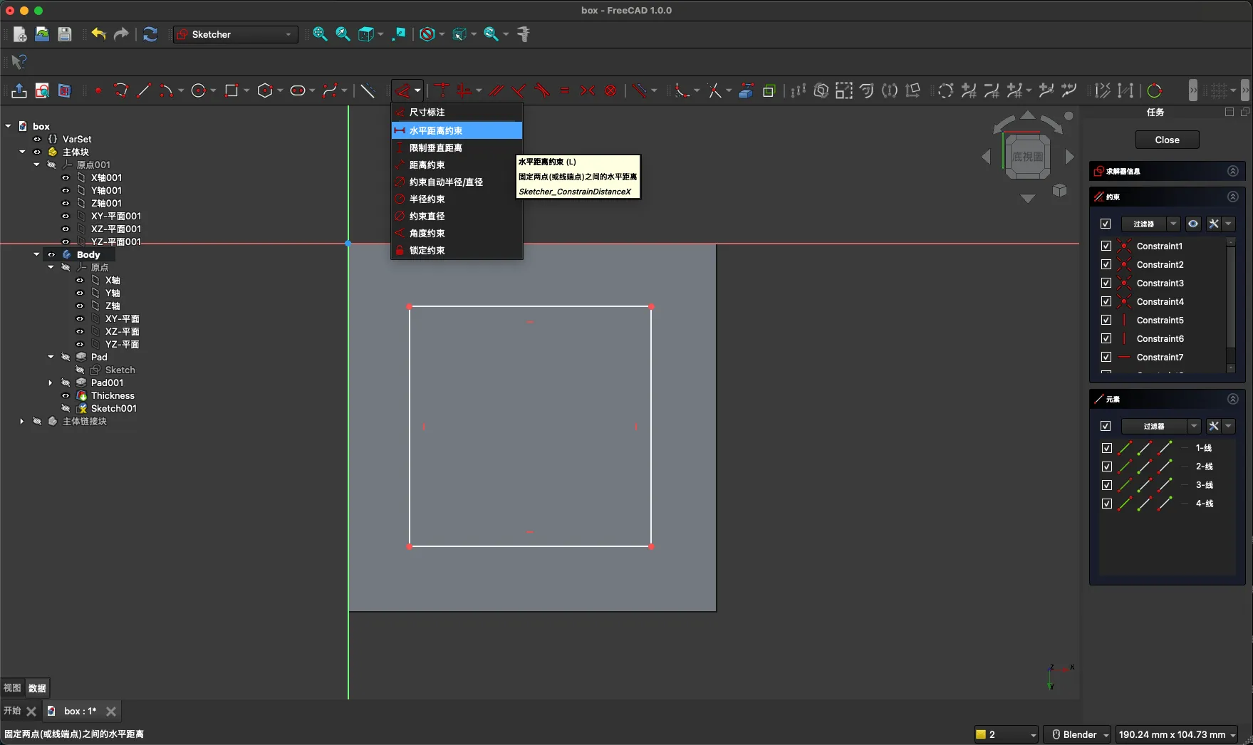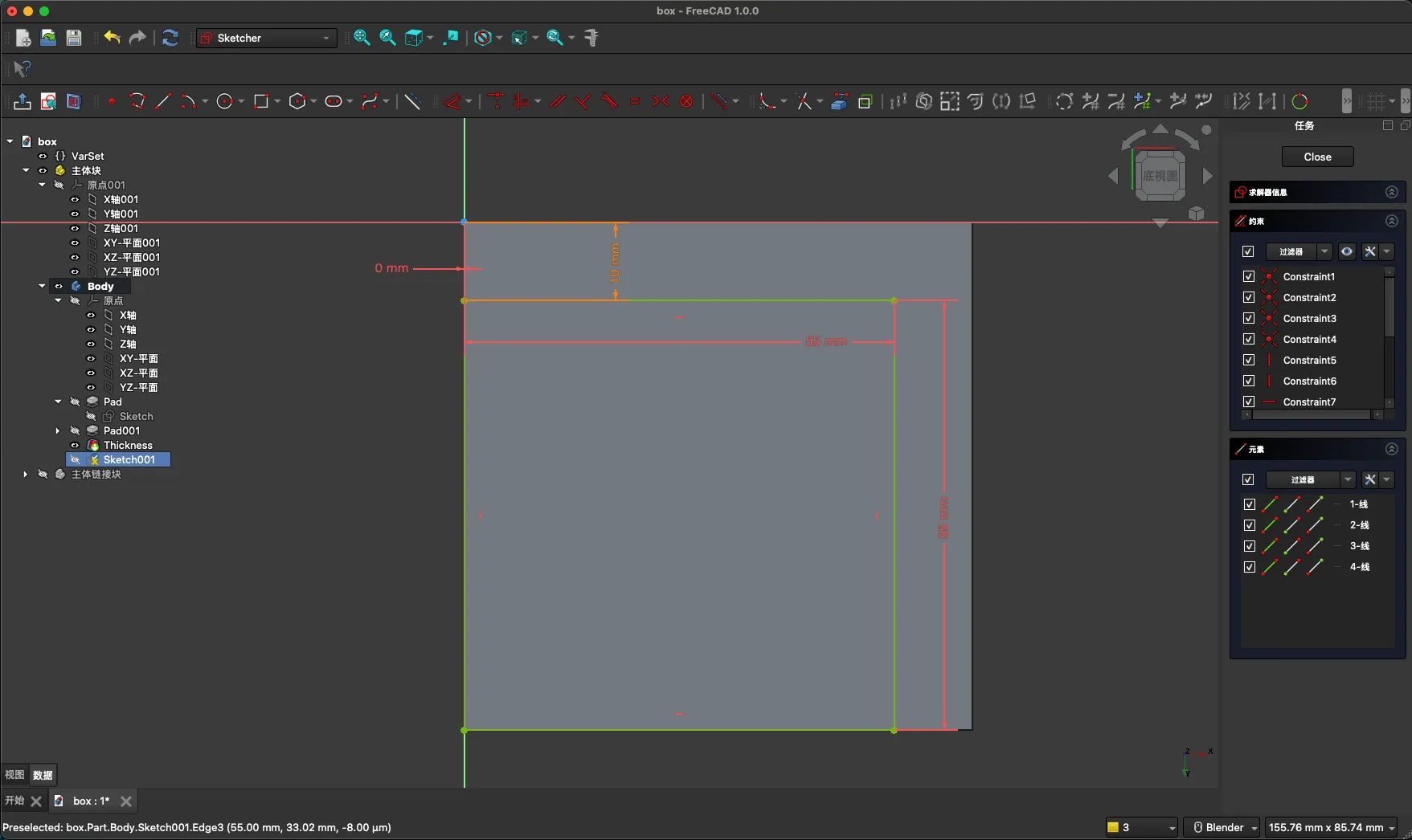 这样的绘制方式相对比较规范,不容易产生问题,如果不以原点进行绘制,有时会产生不必要的麻烦,FreeCAD是相对比较严谨的工业设计。