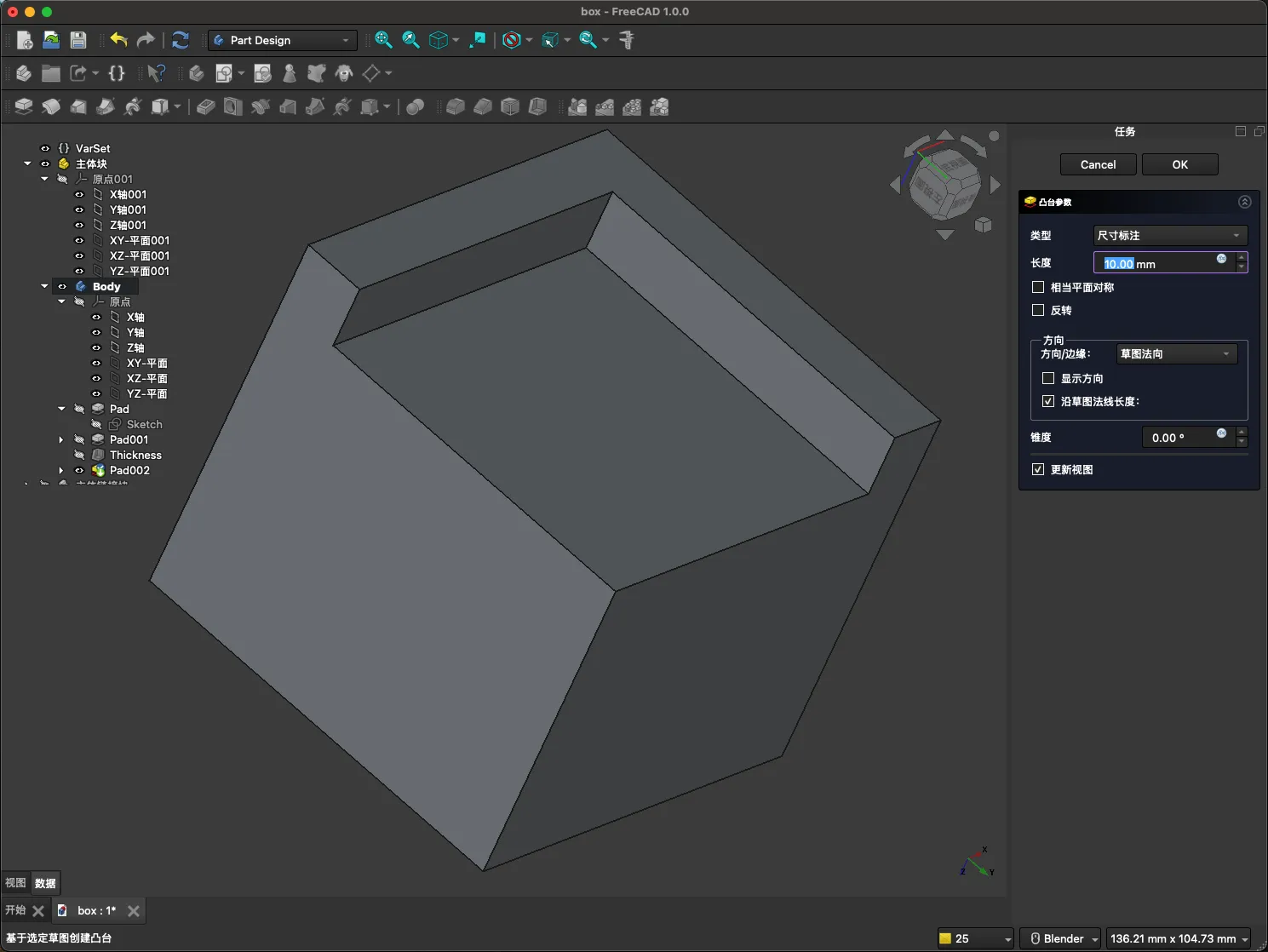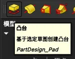当我们绘制完一个草图后,点击退出草图,在列表中选中选择好的草图,就可以对它进行零件设计,我们选凹凸,就可以实现凸台的拉出效果