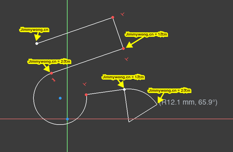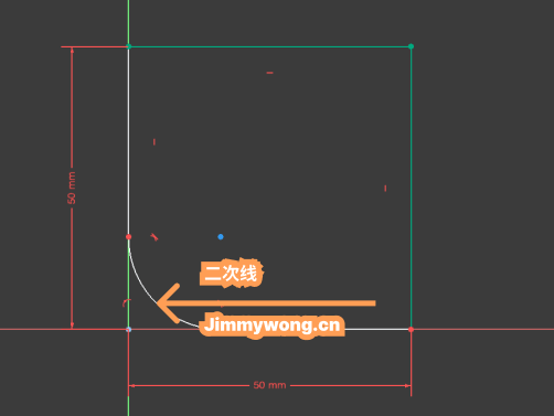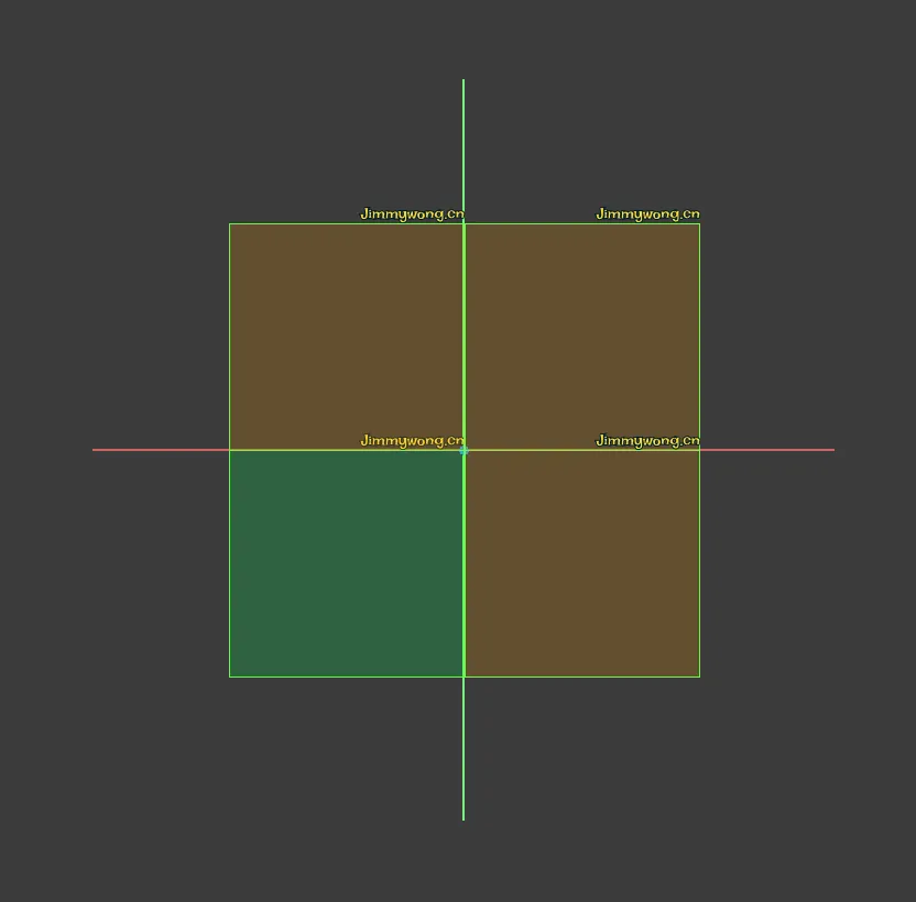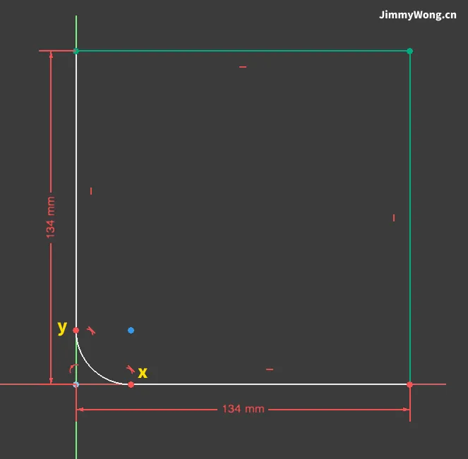通过第二章学习的内容,先绘制1/4部份,然后其余的3/4就可以通过镜像进行复制,我们需要求1/4的部份绘制在【绿色】块中,然后对应,方向去镜像【黄色】部份的内容如图 3.2.22-0