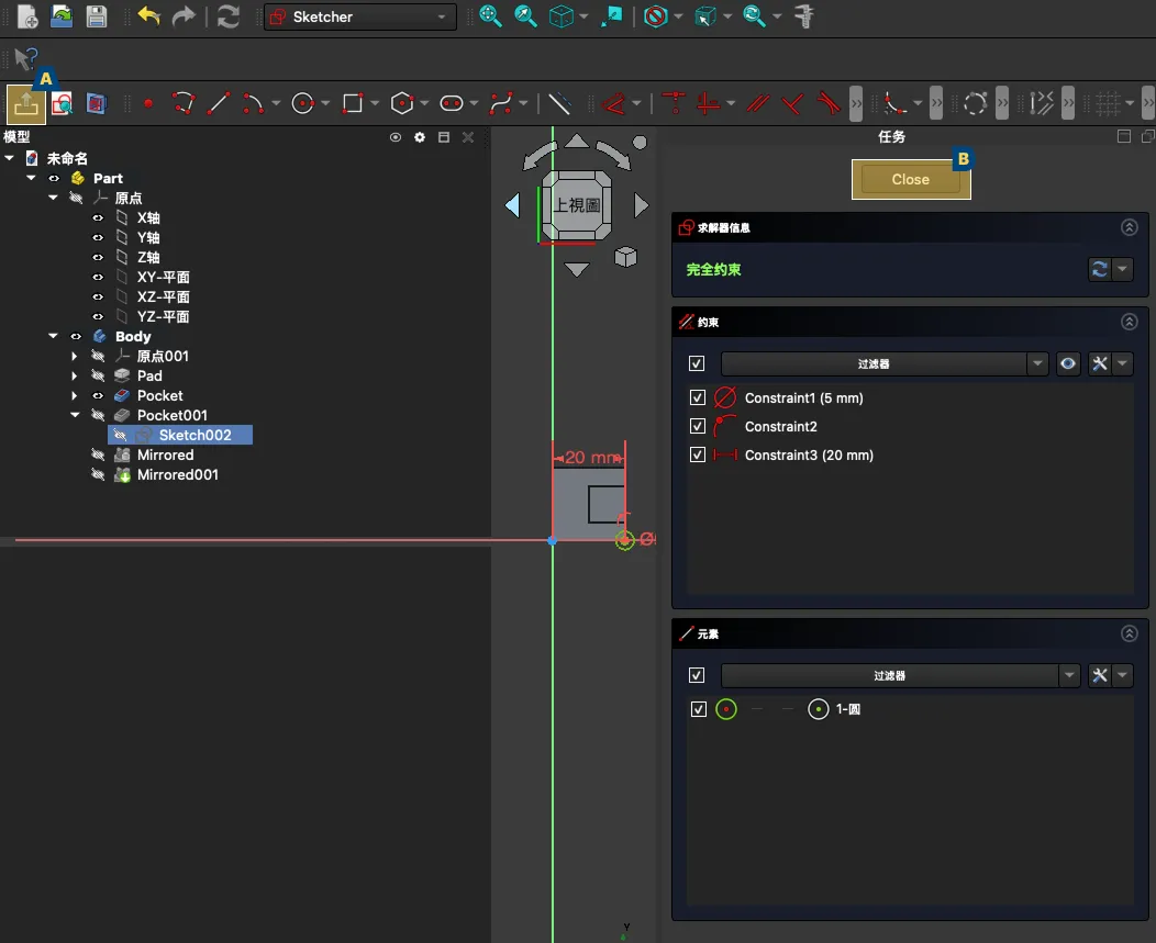 Part 零件 [创建零件] > Body 实体 [创建实体] > Sketcher 草图