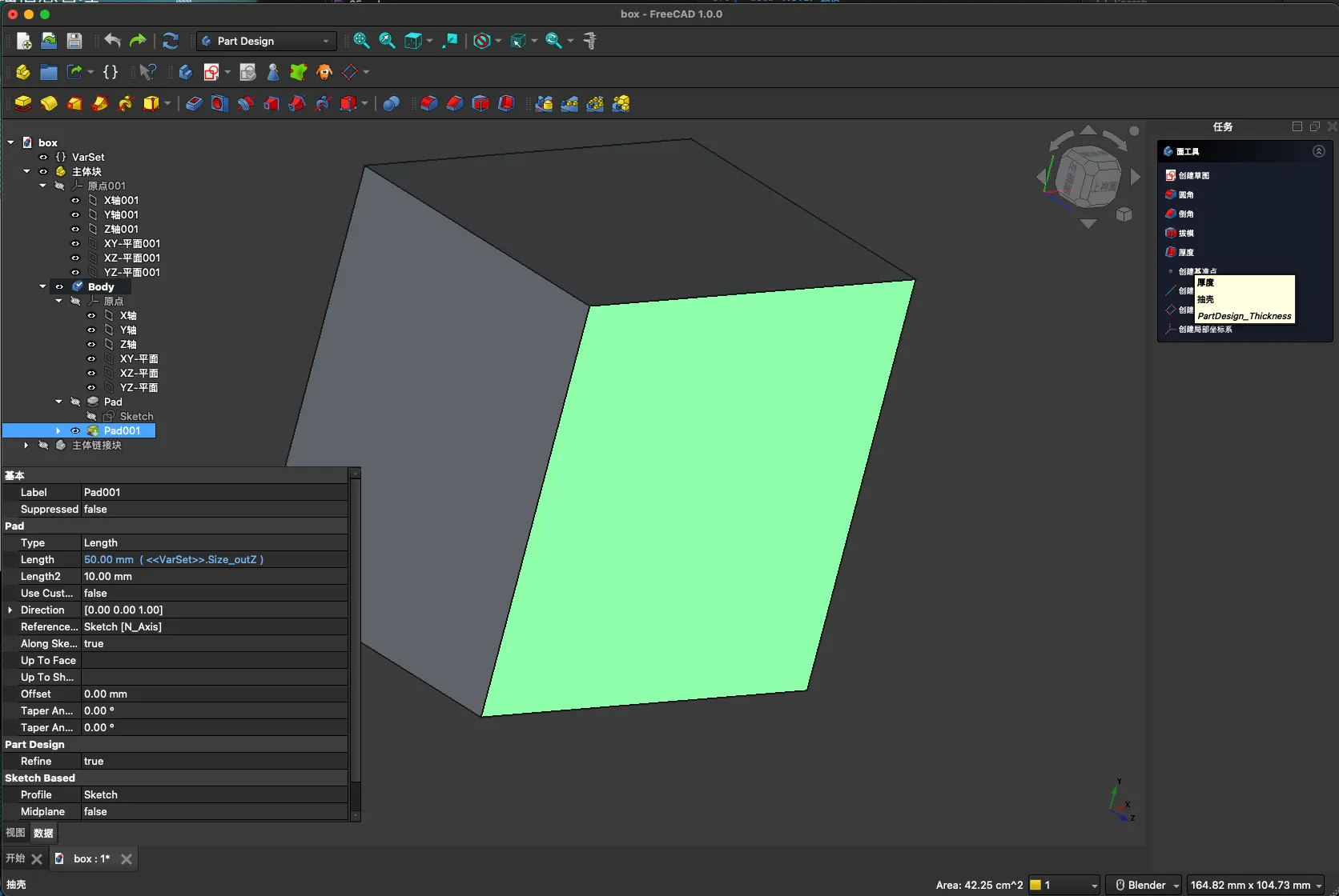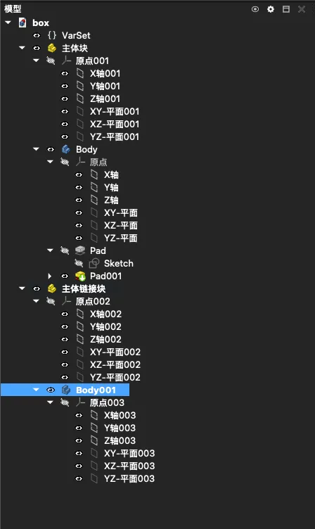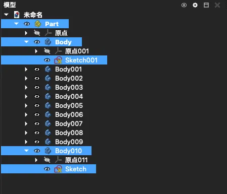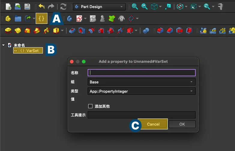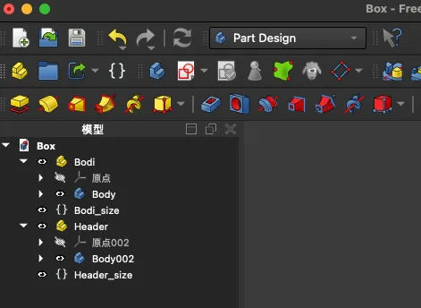虽然 FreeCAD 支持中文命名,但在实际操作中仍建议尽量避免使用中文(目前中文也无法进行参与变量集的命名)。推荐优先使用 英文或其他通用文字如拉丁字母,拼音等,以确保在不同平台和多语言环境下的兼容性。