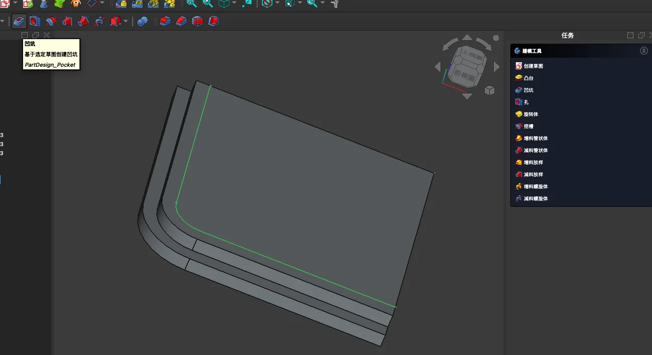 退出草图图后,我们选中我们需要实现凹坑的草图对象