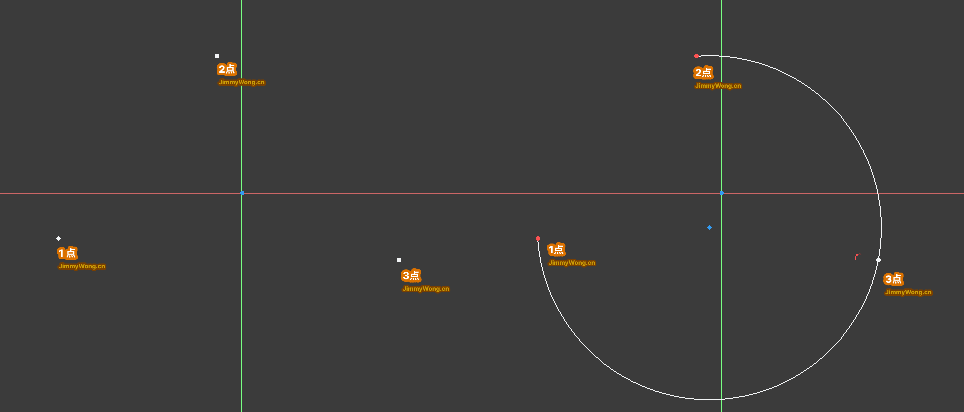 如果是1/2的对称图形,我们可以绘制在一侧绿色,另一侧通过镜头进行复制,即是黄色部份,如图 3.2.22 -1