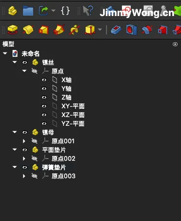 我们把镙丝和镙母拆分成两个零件,一个为镙丝,一个为镙母,那么此时,镙丝为一个Part,镙母为一个Part。在这里,我们做两个零件,一个是主体块和一个主体的链接块。