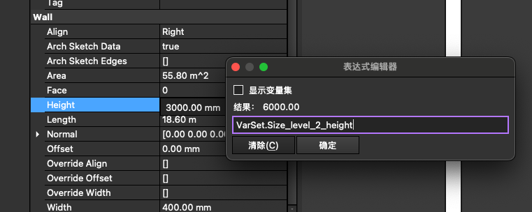 通过我们定义好的【数据集】选择【level_2_height】来绑定【墙】的高度, 图 2.3-4